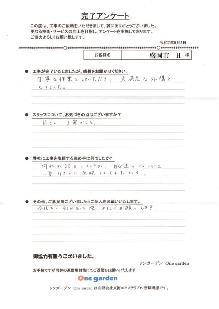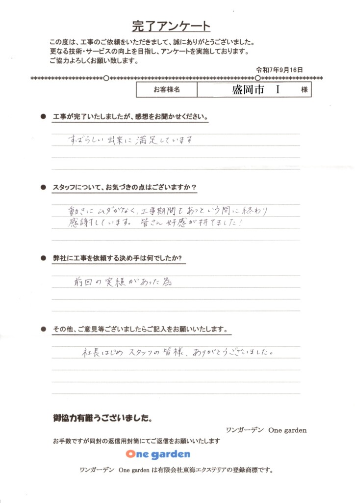 動きにムダがなく、工事期間もあっという間に終わり感謝しています。